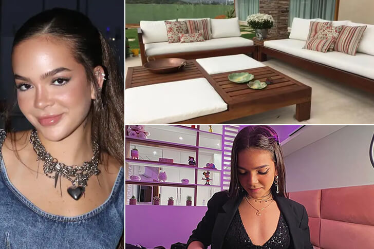 A residência é espaçosa e cheia de conforto, com um quintal gramado, piscina, área gourmet com churrasqueira e espaço de lazer ideal para receber amigos. São quatro quartos, sendo duas suítes, e o destaque fica por conta do quarto da cantora — que abriga um closet gigantesco, perfeito para suas roupas cheias de estilo e personalidade.